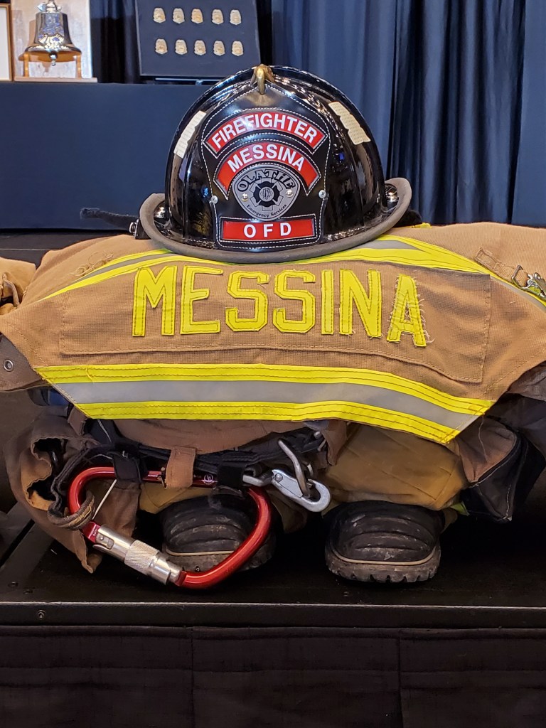 Joe’s fire helmet is on his urn. Michelle asked me if I was offended by that. She said the helmet was so big and didn’t fit on her mantel. I laughed and said that Joe wouldn’t have it any other way.