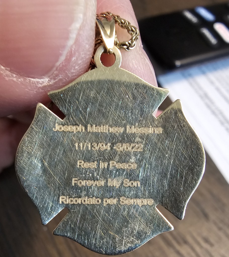 I also wear this necklace everyday and a gold band on my right hand ring finger that has Joe’s thumb print engraved on the outside of it and his name engraved on the inside. Of course, Rich and I both each have a tattoo to remember Joe inked into our skin as well. We may not have a scholarship named for Joe, or a golf tournament, a 10K race or a clinic/school in Africa honoring him like some of our grieving friends do. But we are honoring him every day with what we do. We are living our lives to the fullest as we believe he would want us to do. He always did! We honor Joe with every call or task we are called upon to do with our volunteer fire department within our community. I think Joe would be tickled that we are doing this. What a gift he has given us – that in honoring him, we are able to do such cool things. This would have never been on our radar if we weren’t trying to honor him. We knew it was a sign when we were told this volunteer fire department was number 13….Joe’s birthday.