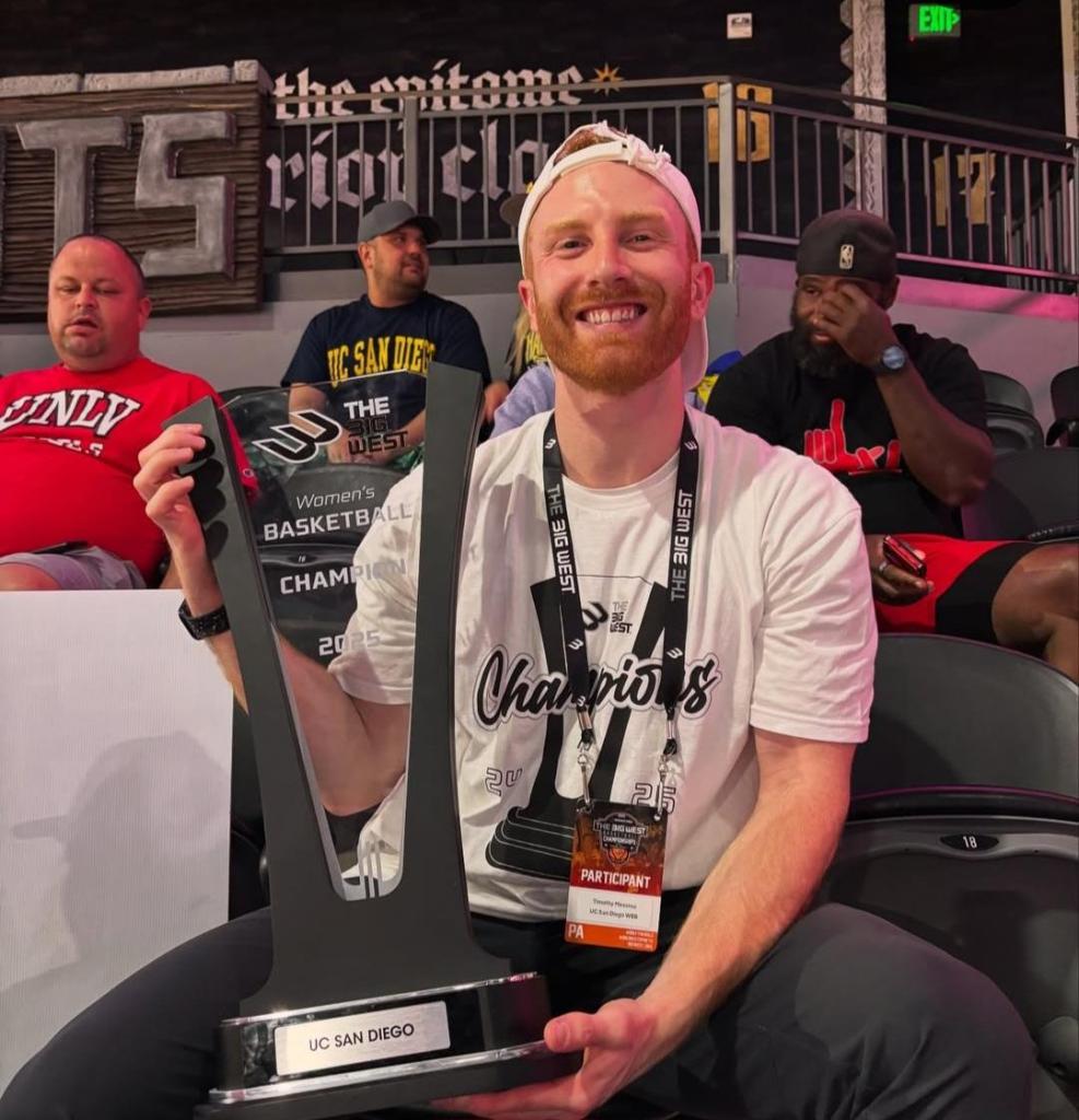 When a college decides to change divisions, they have a four-year waiting period before they are able to compete in post season play. Even if they won their conference, they would not get to play in the Big West Conference tournament due to these rules. Tim stayed on for a second year and it was the first year their sports team would be able to compete like everyone else in their conference. The season didn’t start out well…they were 1-8 in the beginning. However, they slowly started gelling as a team and chipping away at their losing record until they were ranked #4 in the conference and won a spot in post season play in the Big West. Last weekend they clawed their way to the championship game of the Big West Conference in Henderson, NV. They were ranked #4 and ended up winning it all! Better still, the men’s team also won the Big West Conference title as well! How about them apples? They made history as both men’s and women’s teams going to the NCAA Tournament in their first year of eligibility. Unfortunately, their run was cut short on the men’s and women’s side quite quickly. Still, so super proud of all they accomplished this year. Here are some photos I stole from Tim’s instagram page. He and their athletic trainer worked so hard for the girls this year. Tim’s a lot more comfortable in his job and now even has other sports performance coaches from around the country contacting him to chat about rehabing their injured athletes and getting them back on the courts. So proud of Tim and what he does, and for the team he works with. Go Tritons!