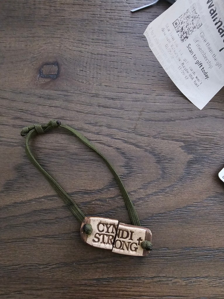 While Rich was in Kansas City, he talked to Michelle about Joe’s firefighting equipment. The Olathe Fire Department gave her his gear….to include his bunker gear, helmet, boots, etc. There was also a bag that he had his stuff he carried at the fire department, with all sorts of random things in there….gum, tools, receipts, etc. Rich duct taped a Rubbermaid tote and brought it home. Michelle has his helmet…the flag presented by the fire department, and his shadowbox presented to her from the department at his celebration of life. She was willing to part with these other things, which was such a huge gift for us. So many of his gear we can use ourselves. Rich emptied Joe’s bunker gear pockets and put most of the contents right into his pockets. We currently have his bunker gear in the special washers at our fire hall as he had been in a fire right before he died and his gear also smelled of diesel. I will be wearing his structure gloves and Rich his utility gloves. He had two black nomex firefighter hoods. I will take one, Rich the other. Our heads will be covered by his gear when we are in cold or fiery situations. I took his small flashlight to carry in my EMT jacket. He had 3 challenge coins in his bag….two of them being religious that I gave to him…a St. Florian coin (the patron saint of firefighters) and the firefighter’s prayer coin I put in his stocking the first Christmas he was working as a firefighter. The other was his OFD coin. As we continued to look through his bag, we found a “Cyndi Strong” bracelet from when I was first diagnosed with cancer a little over 5 years ago. He had told me his had broken, so I gave him mine and he reinforced that one and would where it. The broken one was in his bag. Joe loved to cook for his crew. Because of where he was stationed, he often cooked for a double crew – about 9 people. It started out as punishment for being the new guy, but then they realized he enjoyed cooking and was pretty good at it, he volunteered to do it regularly. I can’t tell you how many texts I got from him asking me to take a photo of one of my recipes for him to try out on his guys. He felt like he needed to expand their palates and would make things like Okinawan chicken curry and rice. There were two receipts from Walmart in his bag from 6 weeks prior to his death where he had purchased food for meals for his guys on shift with him. Of all the things, these two pieces of paper made the waterworks flow hard for me. We found three of his accountability tags, and will each carry one with us, as it has his photo on it. I also found his small notebook from the City of Olathe, which had a message that hit home. It was such a gift to go through these things….the objects of his trade, that we are now trying to do to honor him. To have his things with us on our calls – absolutely priceless. We can’t thank the OFD and Michelle enough for letting us have these items.